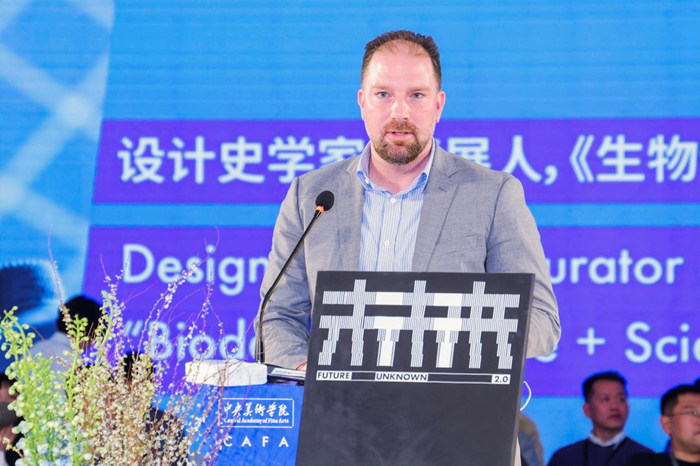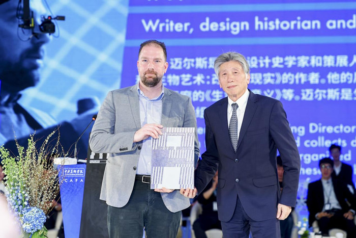 中央美術學院院長、中國美術家協會主席范迪安在論壇現場為《生物設計》作者、設計史學者、策展人威廉 · 邁爾斯(William Miles)頒發客座教授證書