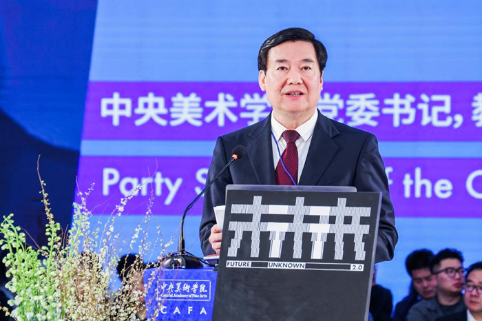 本次論壇由中央美術學院黨委書記高洪擔任論壇主持。高洪提出四個“期待”,一是期待論壇對當下藝術設計教育思想進行深入的思考,在審視藝術設計教育的新方位、塑造教育的新思維、新方法上取得新成果;二是期待論壇在探討如何通過多類型思維的創造性構建,運用組合策略培養未來優秀人才方面取得新成果;三是期待論壇探討如何將歷史的方法和經驗賦予到新時代人才培養中,將世界的發明發現賦予新學科建設,將人類的思想智慧賦予新時代的變革中取得新成果;四是期待在「未·未來」主旨論壇、學科研討、多邊論壇中聽到真知灼見,“未·未來”系列展覽中看到豐碩成果,在“未·未來”開放的課堂中感受教育教學改革的深入探索和發展。