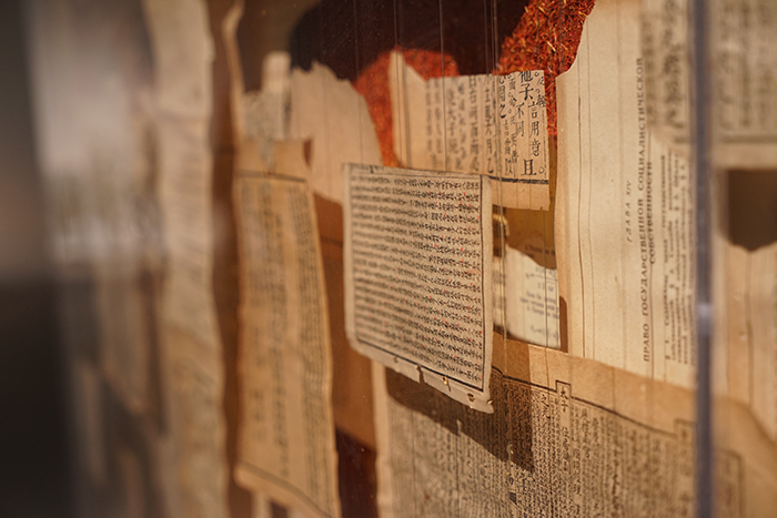 這個展覽匯集了20位藝術家所創作的60余件、套作品。藝術家們在“海上絲綢之路”這個宏大歷史主題的引導下,完成了為期一年的考察、研討、備料、創作和搭建的過程。展出的作品包括大型裝置、影像、架上藝術和綜合材料繪畫,在整個空間中形成了完整而宏大的敘事結構,以多元的當代藝術表現形式實現了“海絲”主題的理念詮釋和藝術呈現。