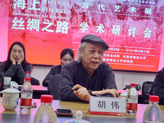 中國美術家協會綜合材料繪畫與美術作品保存修復藝委會主任、中國國家畫院研究員、“‘海上絲綢之路’當代藝術展”項目負責人胡偉發言