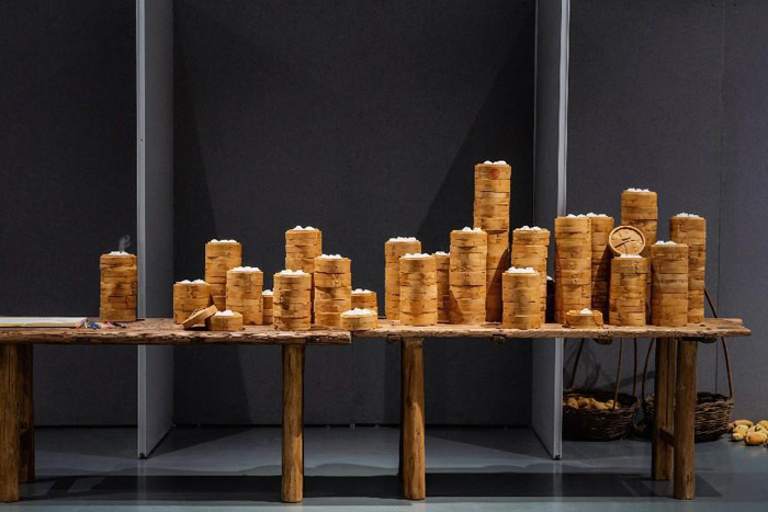 將目光投射到另一側,鑫萌的雕塑在顯現出田園景觀的同時,把日常生活轉變為了一種詩化自然的創作。由藤條相互纏繞編制而成的《編物》,肉眼所見的是材料、工藝、技法和交織,望向另一側則是一種自然的深層律動的節奏、萬物的呼吸與田園生活的呼喚,這里面更大程度上是一將歸園的尋?,F象轉為心理節奏的解脫,進一步而言是對物質欲望的解除以及對現代性的反思,因為在現代化發展過程中,電器的出現到人工智能器具的生活介入,人對于物的感受逐漸喪失,這件作品重提了對現代性的反思,也進一步打開了從商品到資本再到技術迭代過程中,當下社會進行“欲望生產”自我邏輯的反思。而《節氣圖景》是一種當代性陳述和傳統文化觀念的綜合創作,“節氣”不僅意味著氣候的變化、節令的規律,這里面是人與自然的共生關系,是整個生態體系在人類社會進化過程中的經驗總結,是人與自然、生命同宇宙之間的息息相通,要讀懂這件作品不僅需要一體同觀的古今認識,更需要一種“深觀遠照”的方法去打通道德之于宇宙、生命之于性靈、藝術之于審美的三者關系。