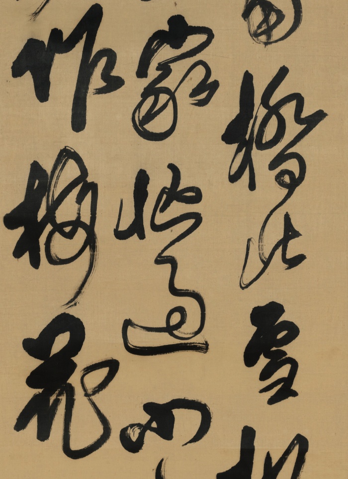 清 傅山 《草書七絕詩》屏(局部) 綾本 上海博物館藏 展期:2023.4.29-7.10
