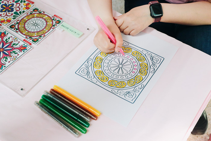 可水洗布料現場涂鴉及涂鴉填色體驗。涂鴉成果可由工作人員完成圖片轉化,現場制作成衣服、馬克杯、手機殼。