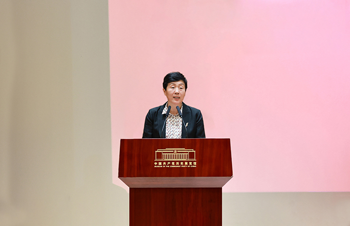 王曉真表示,中央廣播電視總臺成立5年來,深入貫徹落實習近平總書記對總臺工作的一系列重要指示批示精神,主動服務和融入新發展格局,著力推動高質量發展,打造更多具有破圈能力的爆款IP。此次出版的《美術經典中的黨史》畫冊,將靜態的圖像和文字,與動態的視頻互為補充、相得益彰,以藝術的方式踐行講好中國故事、闡釋時代精神、傳承紅色基因的文化使命。在中國共產黨歷史展覽館舉辦畫冊發布儀式,是向革命歷史致敬、向藝術經典致敬??偱_將乘著黨的二十大東風,把工作做得更扎實,為強國建設、民族復興提供強大的精神力量。