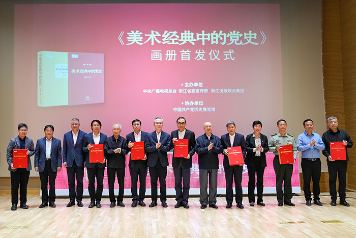 5月22日,由中央廣播電視總臺、浙江省委宣傳部、浙江出版聯合集團主辦的《美術經典中的黨史》畫冊首發儀式在中國共產黨歷史展覽館舉行。中宣部副部長、中央廣播電視總臺臺長慎海雄出席,并與嘉賓共同為畫冊首發揭幕。中央廣播電視總臺副臺長王曉真、中國出版協會理事長鄔書林、原中央黨史研究室副主任章百家等在活動上致辭。