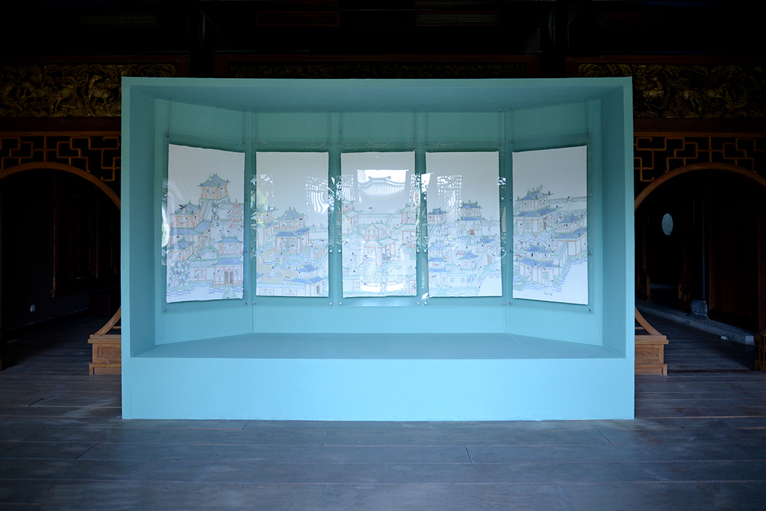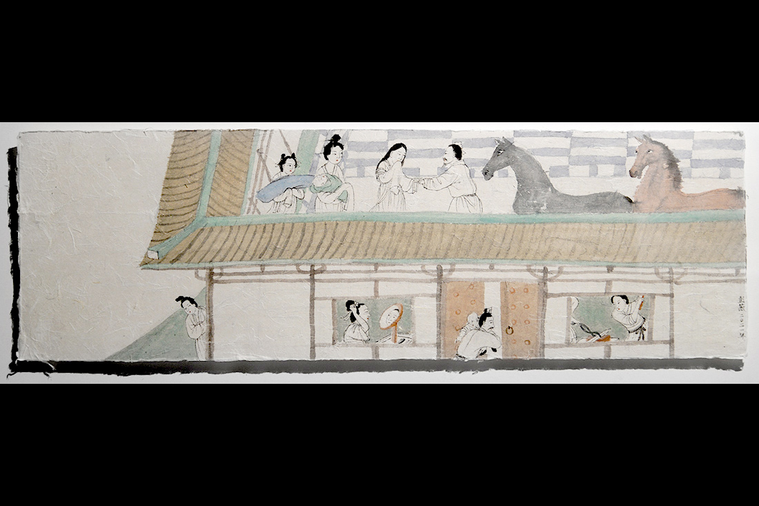 《回廊》系列(局部),彭薇,每幅60×180cm,紙本設色,2022