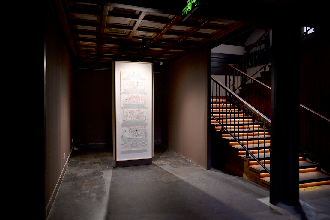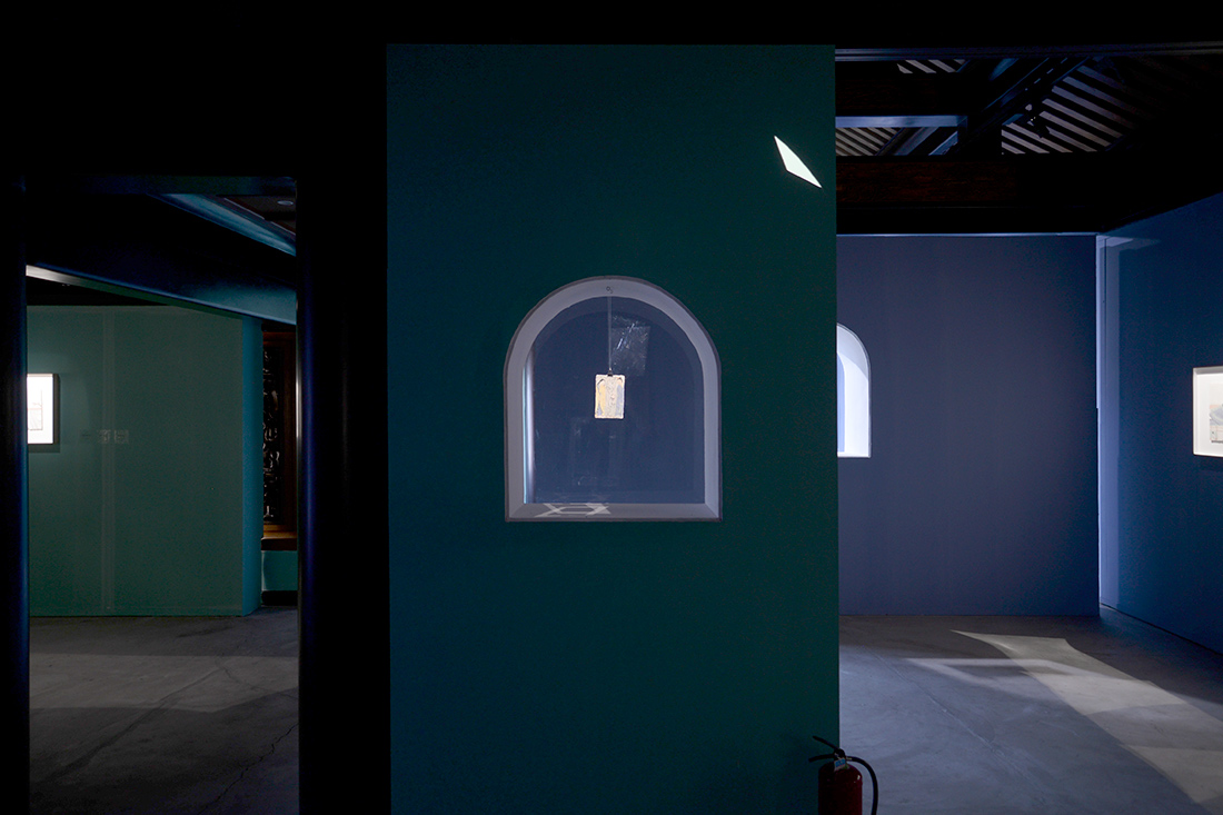 展墻分割成迷宮形式,使展覽動線延長,觀看距離縮短。觀眾可以通過“石窟”洞口窺視到另一個房間的作品,這種洞中洞的通透設計與傳統造園中的借景手法異曲同工。