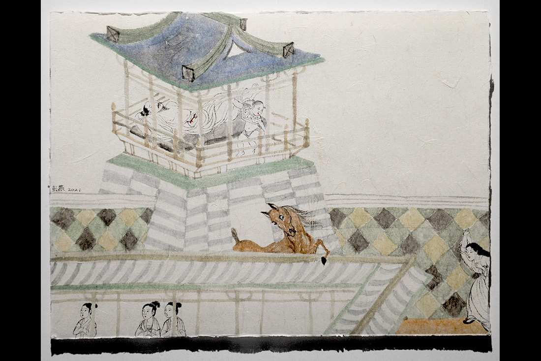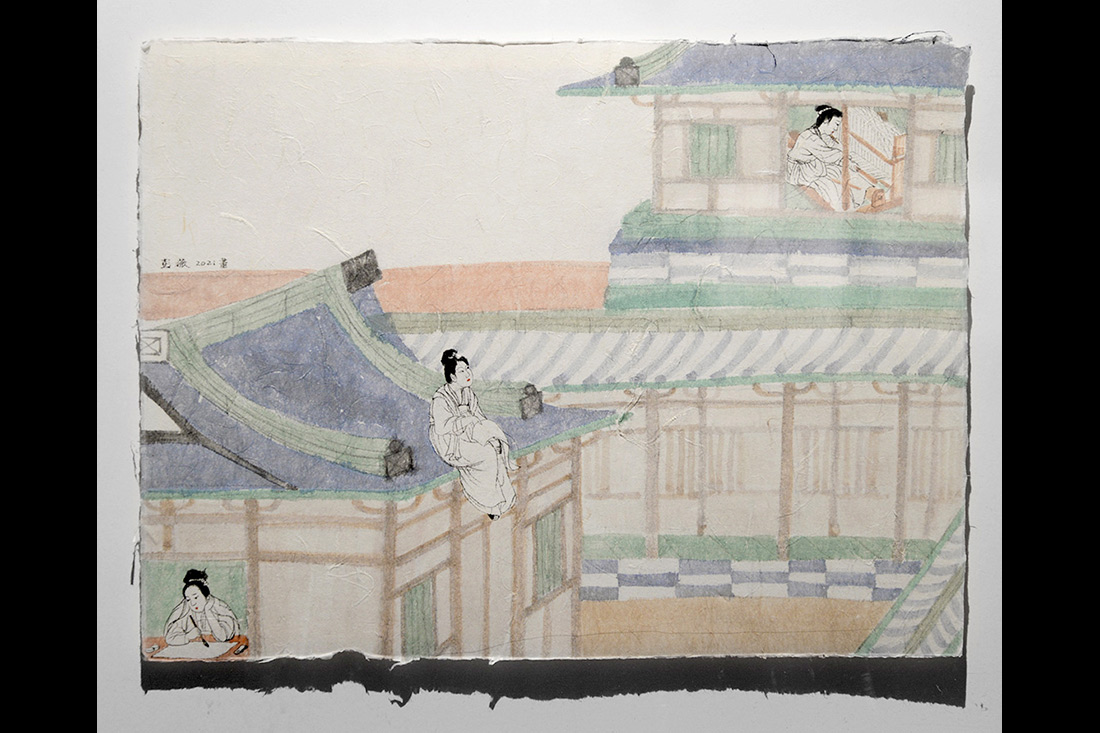 《有故事的房間-蘇惠的故事》,彭薇,35×47cm,紙本設色,2021