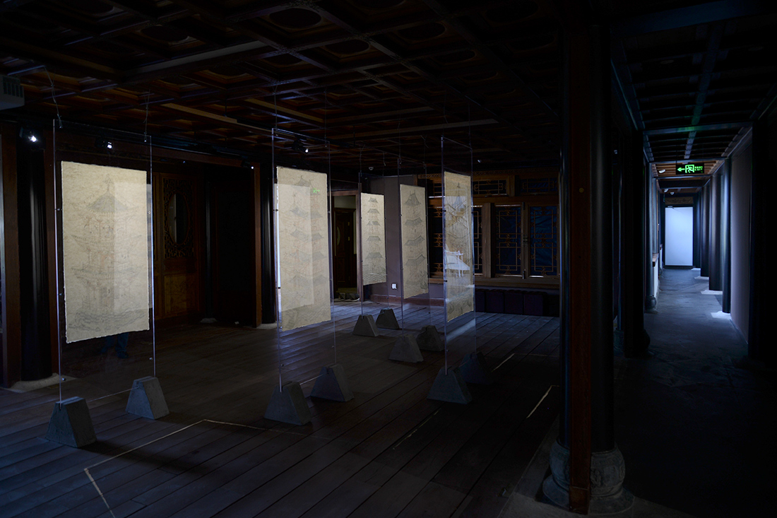 主廳的“碑林”系列意圖將平面的《塔》系列立體化,以碑的陳設呼應塔之形,以三維的“塔”裝置呈現繪畫中的塔,令觀眾處于塔的空間陣列當中。