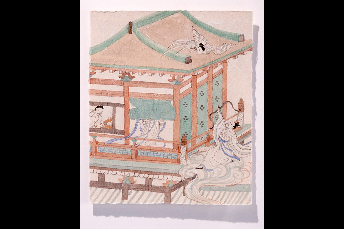 夢境,回憶,生活,傳說,閨蜜交談... ...這些都是彭薇“故事系列”的靈感來源。而作品的繪畫靈感,則來源于敦煌壁畫與意大利的教堂壁畫。