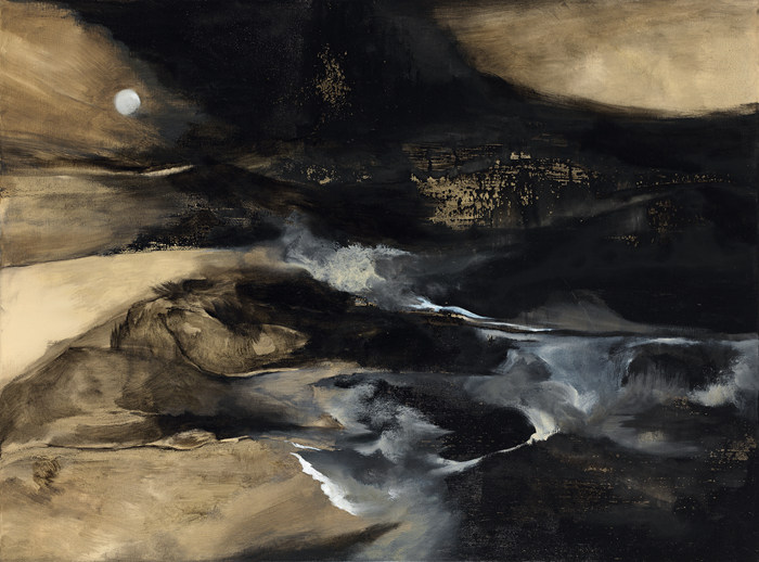 但水墨之精妙在于其心性體悟、慧根彰顯,它的高難往往讓學習者食古不化或筆不精、墨不酣,反而愈久愈變得程式化而走向了華麗的堆砌。但小張蒙幸得靈氣,學至弱冠負籍游學英倫,由大學至碩士,浸沒在異域的文化氛圍與藝術氣場中。在英倫的學習經歷給她鋪就了很好的基礎,此時她不在是水墨的她,而是現代繪畫的她。張蒙將自小習得的水墨繪畫韻致與現代繪畫的變幻融匯在一起,兩廂不分,將兩種繪畫語言的精妙以貫為一。她始終信守人文意境的理念,用一顆純樸、無塵的心看世界、想藝術,沿著自己恒定的心性一路發展開拓,使這種中西藝術內涵氣質的融匯落及實處,在畫面上盡顯無疑。此時畫面中的意境與詩性不再僅僅是騁懷超然的東方韻味,而是在融合后方可顯現的靈性的崇高。