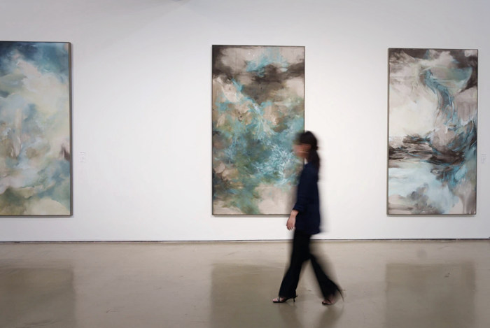 《浮·世》系列是張蒙剛回國期間的內心寫照,環境與身份的轉變使她有些無所適從,而創作是她的治愈方式,作品是其內心的反饋,也使她得到平靜。這個系列依然延續了她在“自然景觀”這一主題上的創作,不同的是,她開始探尋抽象畫面中的具象表達。