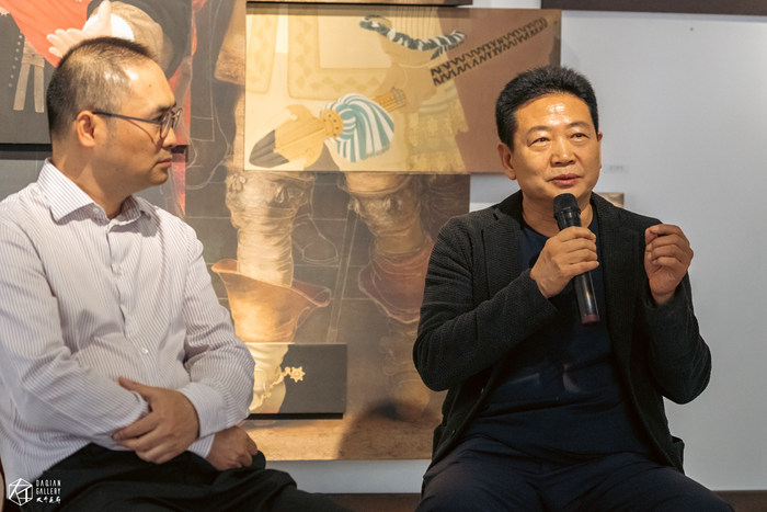 美術學博士、中國美術館研究館員魏祥奇作為本次展覽策展人在開幕式上對到場師友表示感謝并分享策展理念:“展覽主題‘見賢思齊’,有兩層含義,一是以張見為代表的新工筆藝術家致力于融入新觀念和新經驗,建構當代中國畫藝術創作的新形態、新境界,致力于復興中國畫學精神中博雅精妙的民族文化氣象;二是工作室的青年藝術家們在創作上求真、求新、求變,努力向著老師和老師設定的畫學理想和方向不斷邁進。今日開幕式前,張子康老師和張見老師就‘新工筆的言辭’展開的學術對話,也將本次展覽從展廳空間的觀看引入理論和歷史層面的觀看。