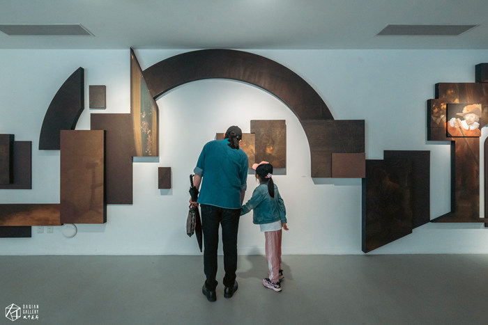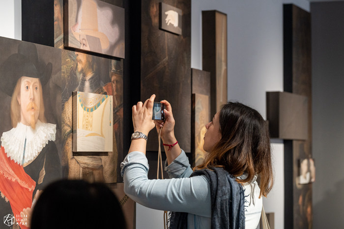 作為本次群展青年藝術家的代表,中國藝術研究院美術學博士畢曉慧,同時也是作品《當<夜巡>來到中國》主創之一,對此感觸頗深:“這部巨型繪畫裝置作品由導師張見先生,帶領我們10位藝術家,經過疫情期間一年多的不懈努力共同創作,它凝結著我們50余次不間斷的思想碰撞與融合,更凝結著我們從各自獨立創作到組裝之后首次見到作品的驚艷心情。
