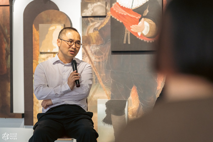 開幕式上,中央美術學院美術館館長、教授、博士生導師張子康先生專程到場祝賀并發表致辭,他表示:“多年來,藝術家張見始終在創作實踐與試驗中不斷推進,同時他也是一位特別優秀的老師,在與同學生們的交流中,張見多是在思想觀念層面加以引導,這一點從現場展出的眾多精彩作品中足以窺見。作品《當<夜巡>來到中國》借中國工筆畫和傳統壁畫的綜合呈現,以及展陳上的鏈接疊加,令我們看到古典主義與新工筆繪畫的碰撞,這一后現代的表達方式,更為當代藝術構建出文化層面的新的認知與思考?!?/p>