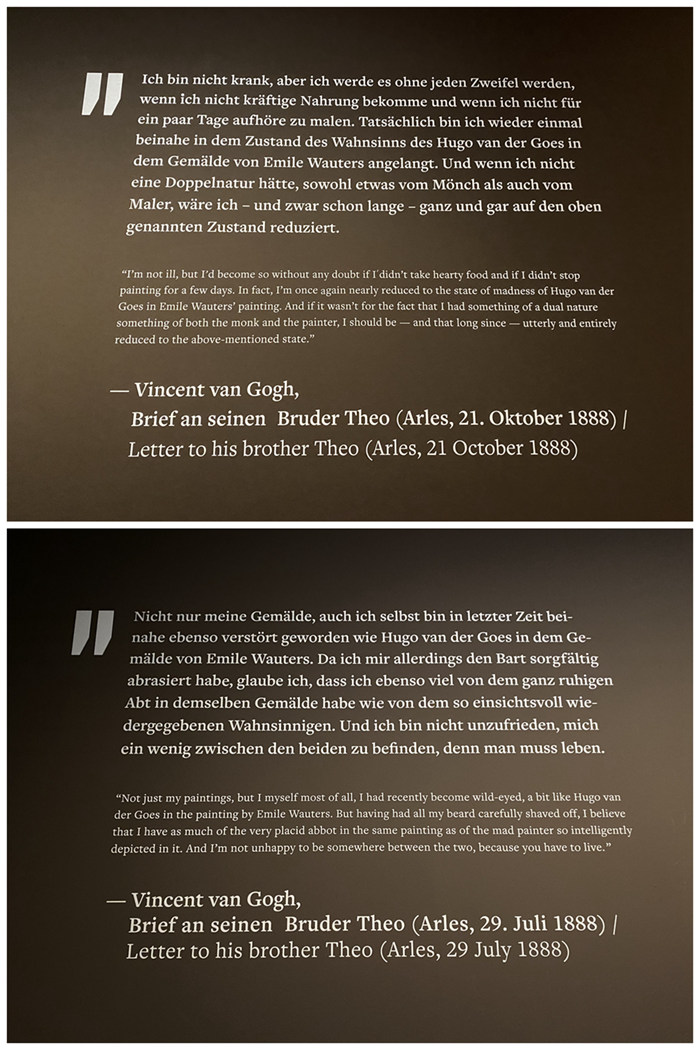 梵高所說的“卡在兩者之間”,正如古斯展覽的命名——“苦痛與極樂之間”——看完整個展覽,會覺得展覽名起得格外貼切,雨果?凡?德?古斯這個人、以及他的畫作正是處于苦痛與極樂之間,他經歷了兩極的一生,如一半是海水、一半是火焰,在擁有世俗的莫大成功后,選擇隱居森林深處的修道院。