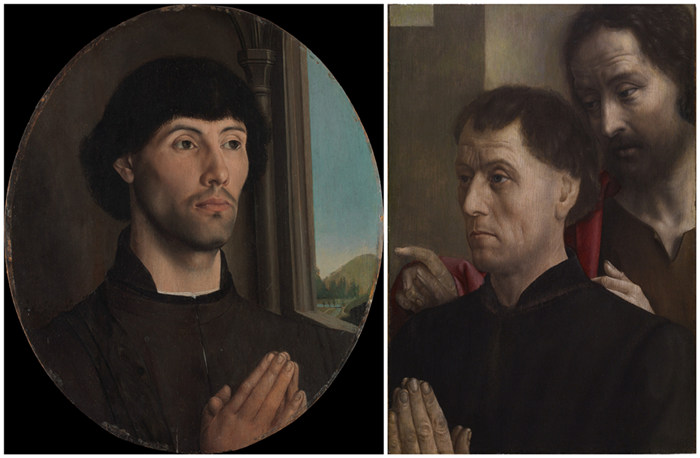 雨果·凡·德·古斯,左圖:“男子肖像”(Portrait of a Man),約1475/80,美國紐約大都會藝術博物館(The Metropolitan Museum of Art);右圖:“施洗者圣約翰的肖像”(Portrait of a Man with Saint John the Baptist),約1475/80,美國巴爾的摩沃爾特斯藝術博物館 (The Walters Art Museum)(Baltimore,The Walters Art Museum)