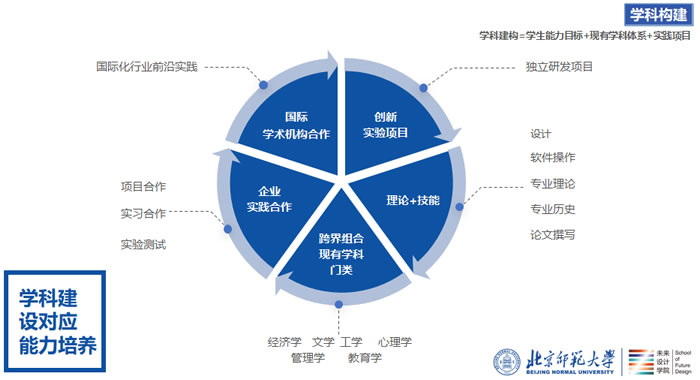 以京師大學堂為前身的北京師范大學是中國第一所國立師范大學,未來設計學院依托于北師大現有的教育學、心理學等學科優勢,突出師范類院校特色,開創設計跨學科教育的新方向,因此其設計與教育板塊無疑成為最吸睛的亮點。