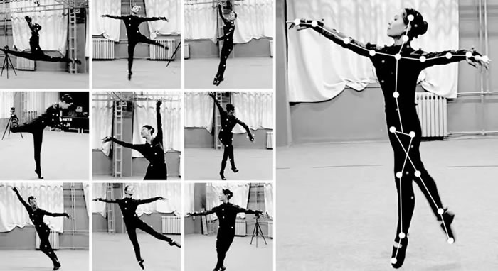 “跨媒介合作創作系統的研究與設計”項目中,芭蕾舞者和漢唐舞者的標志姿態和精彩瞬間