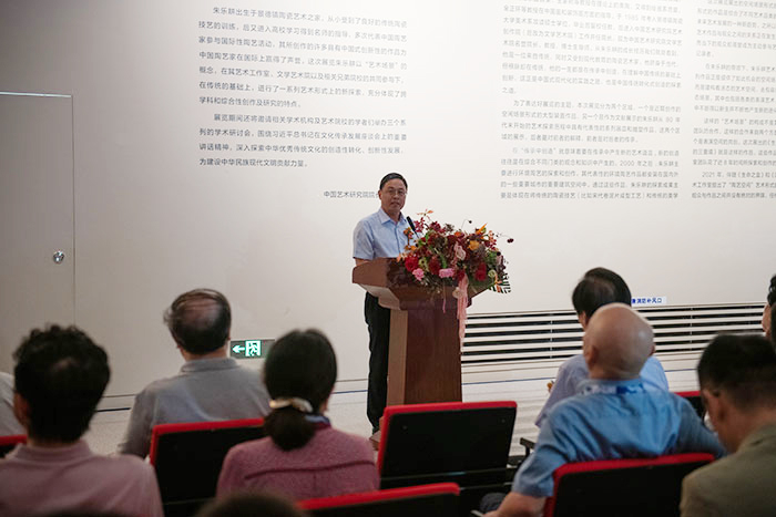 中國藝術研究院院長周慶富在致辭中表示,此次展覽由朱樂耕和朱樂耕工作室團隊領銜,中國藝術研究院文學藝術院和相關兄弟院校共同參與,是以藝術場景為概念對傳統藝術形式進行的嶄新探索,體現了跨學科和綜合性創作研究的特點。