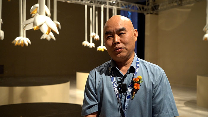 中國工藝美術館副館長蘇丹主持開幕式并接受采訪