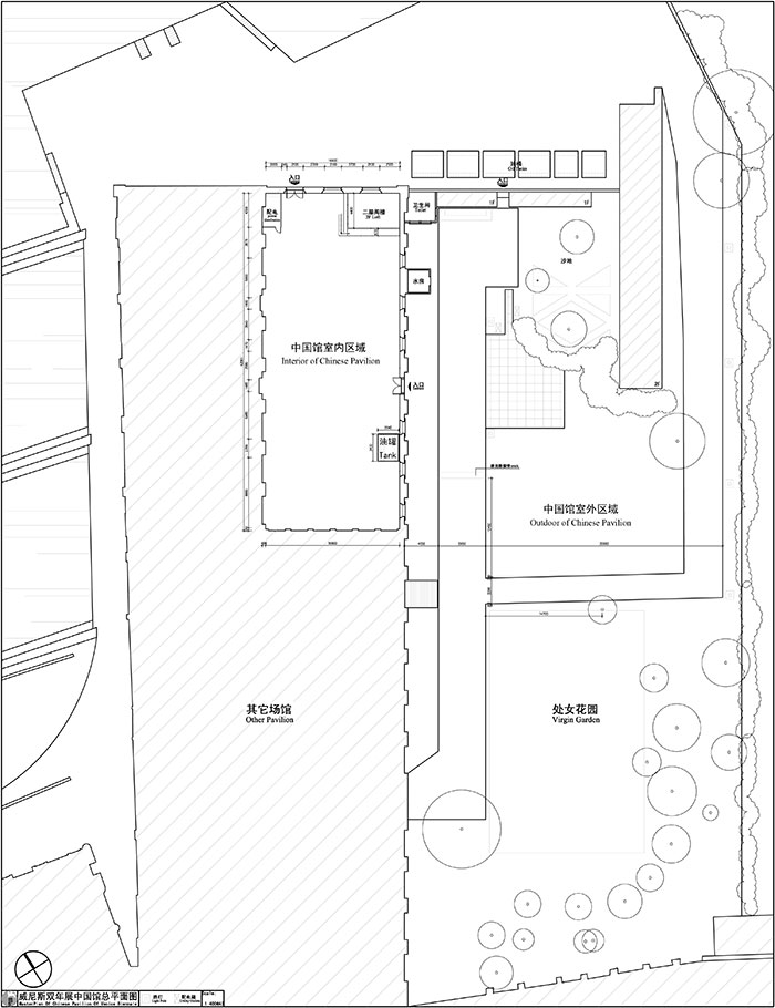 3.展陳形式:對展陳形式沒有特殊限定,但應充分考慮中國館的室內外展覽空間條件,因地制宜,注重內外關聯,通過空間敘事拓展觀眾對展覽的感知和體驗。展陳設計和搭建應遵守威尼斯雙年展組委會的場地使用規范,確保安全。(中國館平面、立面圖及場地使用規范:
