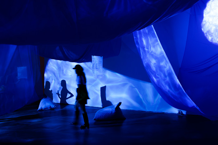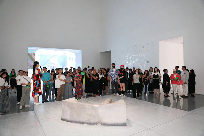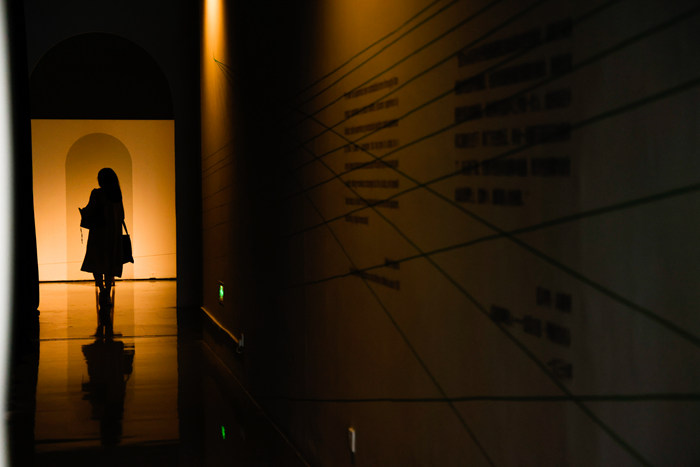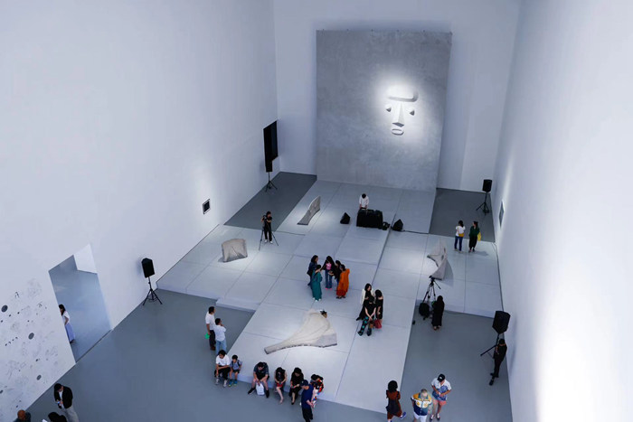 展覽避免明確的觀展動線,鼓勵觀眾在觀看之時通過空間的暗示尋找不同媒介、主題作品之間的“互文”關系。開放式的策展理念使得展出作品不再拘束于傳統意義上美術館空間所象征的“白立方”之中,而是成為“懸浮”在自由空氣中的“任意門”。在此,觀眾得以暫時脫離現有的時空,靈活穿梭于“開放性”時空中,串聯起關于過去、現在、未來之間的對話。