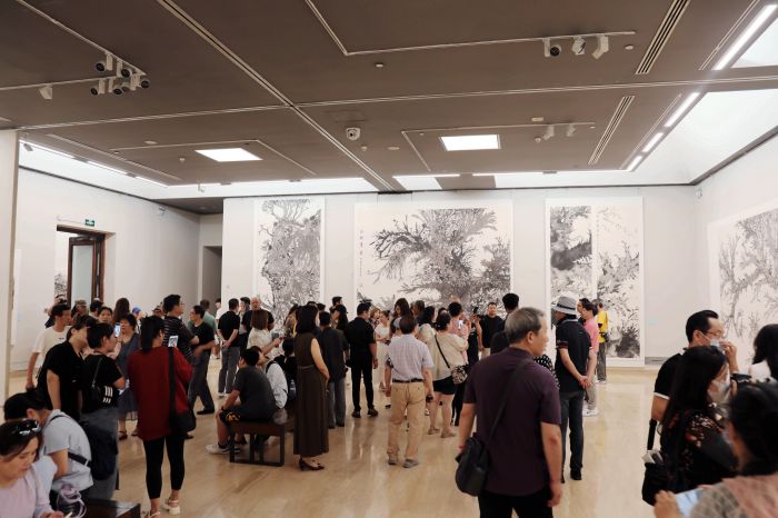 “古樹”系列展現“向陽朝氣萌動”,“漓江山水”系列吹起嵐韻與漁歌,“桂林洞奇石美”系列記錄桂北奇石的萬千姿態,“花非花”系列表現的物象似花非花,而“家鄉風情”系列則將眷戀家鄉之情描摹得非常具體……8月5日至8月15日,由中國藝術報社、廣西美術家協會主辦,桂林畫院、桂林市美術家協會承辦,北京仙茶美文化發展有限公司、桂林秀峰區蘆笛三村、桂林創立文化發展有限公司協辦的“時代氣象 漓江探源——陽光水墨畫作品展”在中國美術館舉辦。展覽集中展示了桂林畫院名譽院長、桂林市政協書畫院名譽院長、廣西美協常務理事陽光創作的34件水墨作品,向公眾展現了桂林獨特的自然風光、深厚的歷史文化積淀和屬于新時代的獨特氣象。