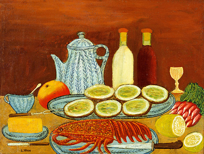 《龍蝦與靜物》,路易斯·維凡,布面油畫,50 x 65 cm,1925,Courtesy galerie Dina Vierny, Paris? Jean-Alex Brunelle
