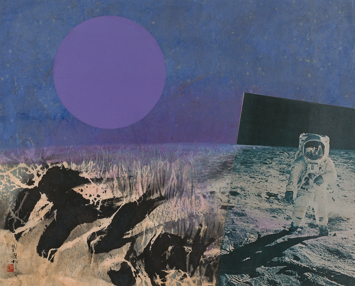 劉國松 月球漫步 1969 紙本墨、丙烯與拼貼 59 x 85 cm 劉國松基金會捐贈 新加坡國家美術館收藏