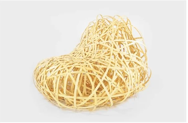 江南布衣與融設計圖書館展開了為期五年的“布盡其用”項目。2022年推出兩款概念產品,其一是品物流行創始設計師Jovana ZHANG利用像紙一樣薄的大理石材料編織而成《無限時空》,其二是品物流行創始設計師Christoph John所創作《Ooo》,是一把用線繩連接竹片編織而成的椅子。圖片?品物流形