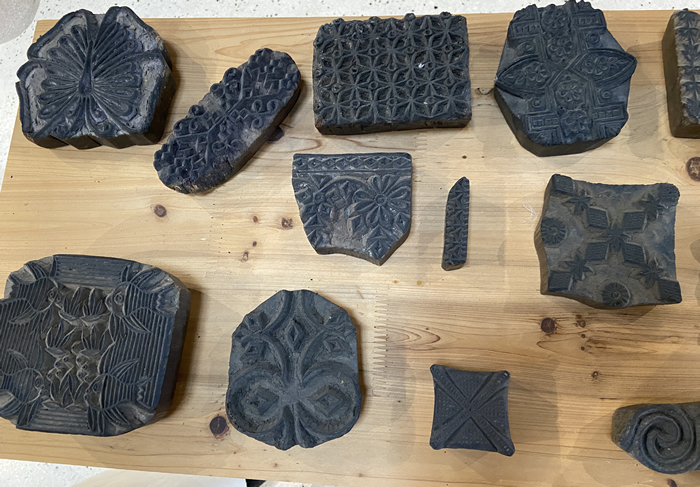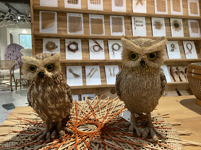 開幕式后,張雷開車帶筆者去參觀他的工作室,車子穿過一片靜謐的竹林,在一個大院前停下,這里就是“品物流形”公司所在地,主樓是一座夯土工藝建筑。這里遠離村舍民居,林木蔥郁,很難想象在這樣安靜的山村里隱藏著一座巨大的“設計實驗工廠”。張雷帶筆者參觀了公司內的工廠,研究和生活空間。張雷介紹,這里面堆放的展飾很多是給江南布衣、愛馬仕等品牌設計的樣品。公司現在四十多人就住在村里,他們分為傳統工藝研究、商業、展覽等很多項目組,設計師與村民也經?;咏涣?,教村民手工藝,共創作品。