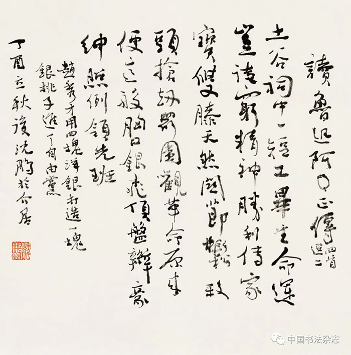 沈鵬 草書自作詩讀魯迅《阿Q正傳》四首選二札 縱32cm 橫32cm 2017年
