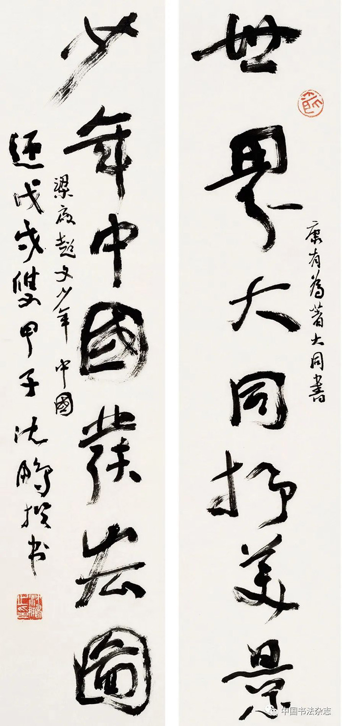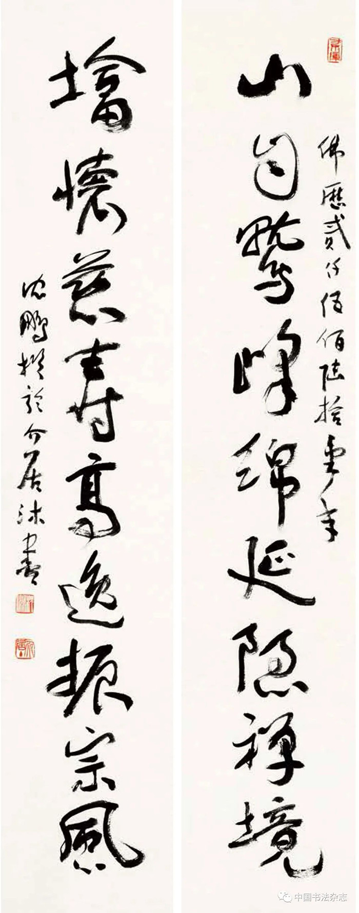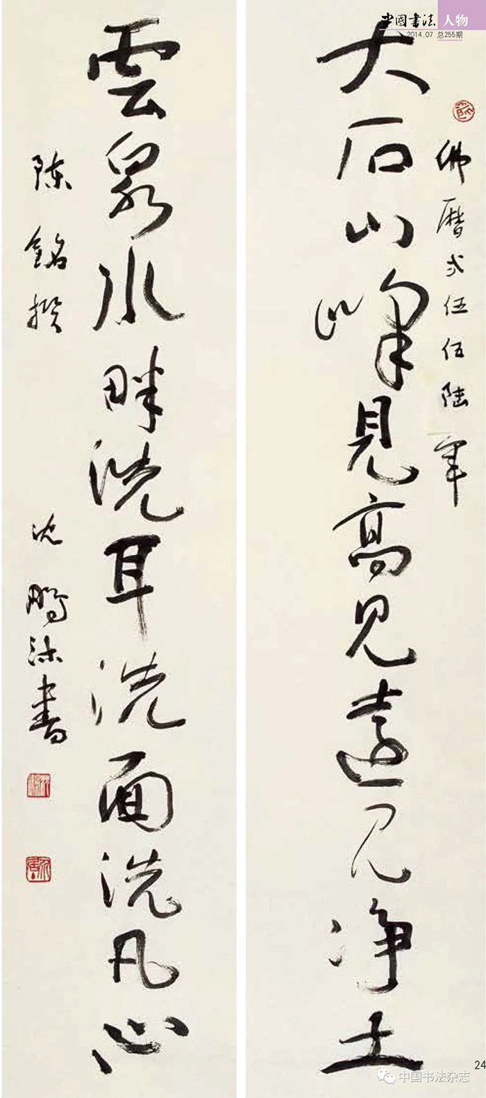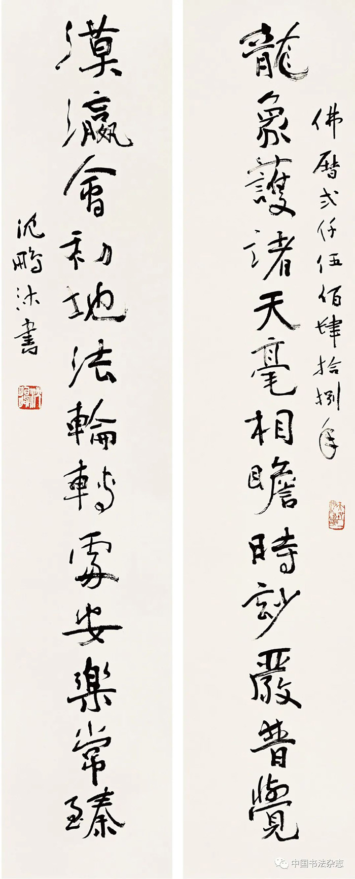 沈鵬 行書九言聯 縱90 cm 橫45 cm×2 2016 年