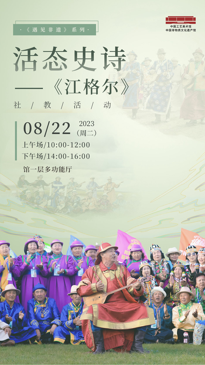 為積極踐行鑄牢中華民族共同體意識,8月22日,中國工藝美術館 中國非物質文化遺產館重磅推出“遇見非遺”:活態史詩《江格爾》社教活動。