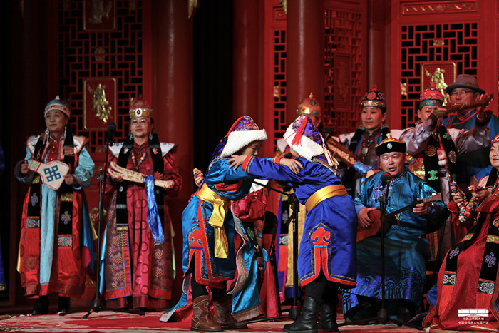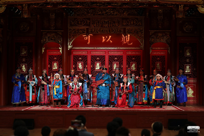 曠遠悠長的曲調、熱烈奔放的舞蹈,馬頭琴、托布秀爾、手風琴、口琴、綽爾、羊皮鼓等樂器演奏……伴隨史詩《江格爾》及多項非物質文化遺產原汁原味的活態展示,觀眾們仿佛置身遼闊的草原,沉浸式感受蒙古族的宇宙觀和世界觀、傳統知識和民間智慧,理解蒙古族與自然環境和歷史的互動,體悟其所傳遞的生生不息的人文精神和文化創造力。