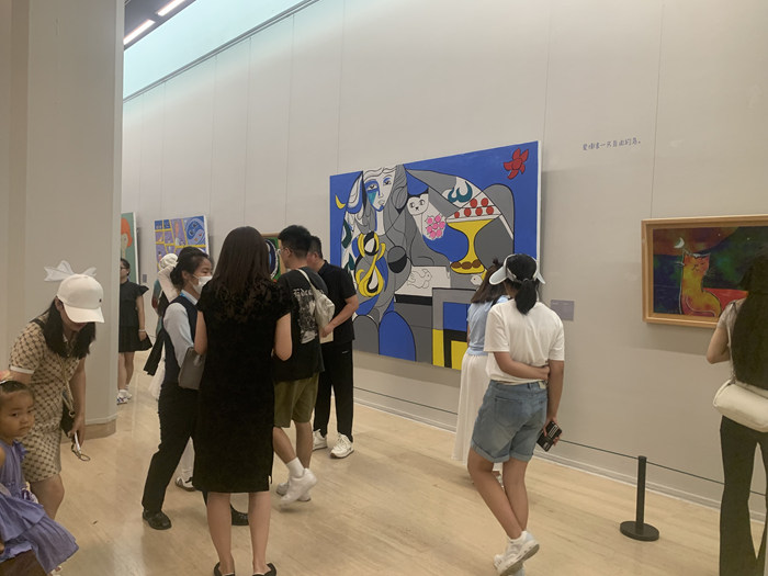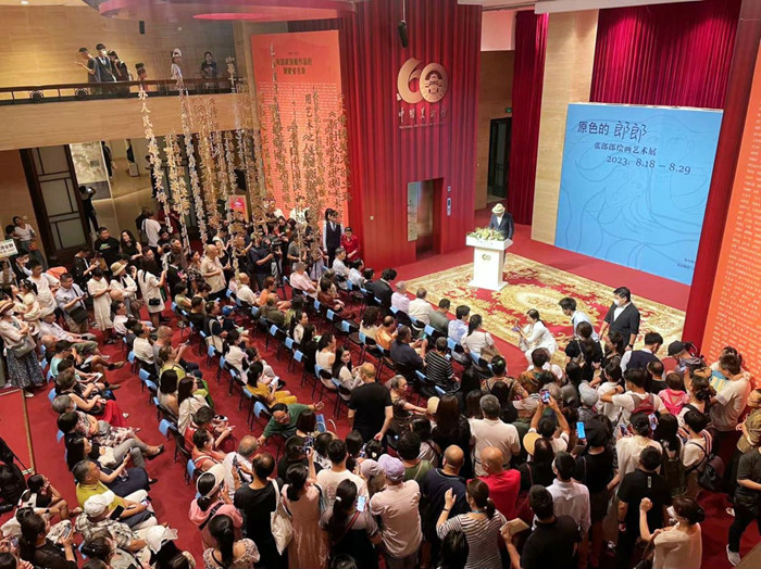 2023年8月19日下午,《原色的郎郎——張郎郎繪畫藝術展》開幕式在中國美術館一層大廳舉行。本次展覽由朱青生作為學術主持,蘇丹擔任策展人,是藝術家張郎郎至今規模最大的一次回顧展。觀眾們紛至沓來、現場人氣高漲。周末客流讓美術館門前排起了長長的隊伍,展廳內更是人頭攢動,熱情高漲,點燃了這場藝術盛事。