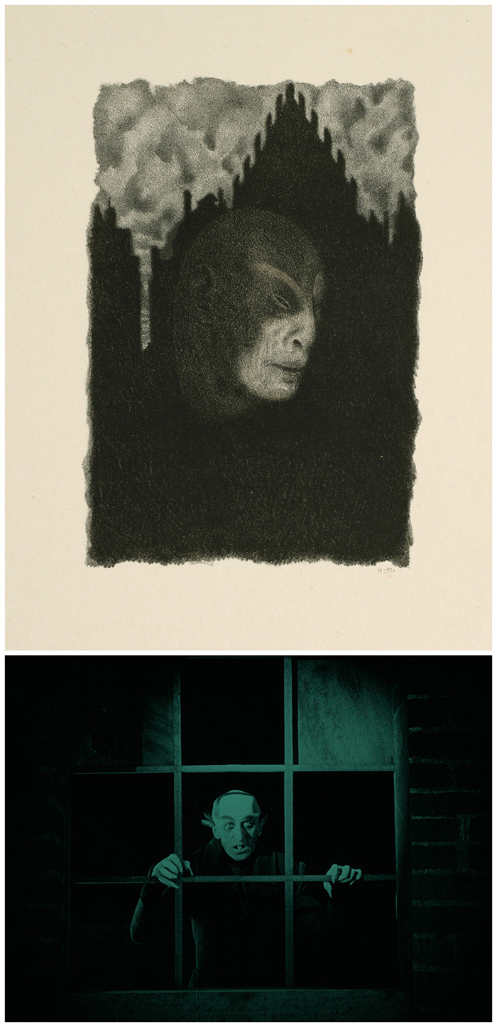 下圖:《諾斯費拉圖》(Nosferatu)電影海報,阿爾賓·格勞(AlbinGrau,1884-1971),約1922