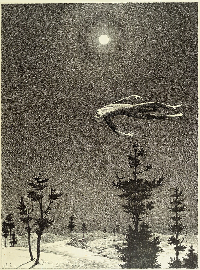 “樹上幽靈”(Spectre above the Trees),弗蘭茨·塞德拉切克 (Franz Sedlacek,1891-1945?),1932,水墨畫,奧地利 O? Landes-Kultur GmbH 藏品