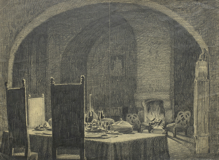 電影《諾斯費拉圖》場景設計,阿爾賓?格勞,鉛筆畫,1922