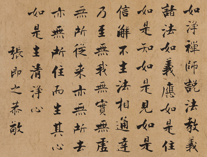 宋 張即之《楷書寫經》 水墨紙本鏡心 16×21公分 估價:HKD 2,000,000-4,000,000顧巖壽木蘭花慢詞一首 水墨花箋冊頁 31.5x71公分 HKD 7,000,000—HKD 8,000,000