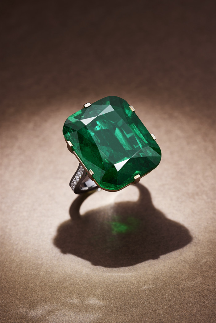 木佐礦區 32.86克拉哥倫比亞「木佐」祖母綠配鉆石戒指,未經注油附Gu?u?belin,SSEF及 GRS證書估價: HKD 18,800,000 – 28,000,000