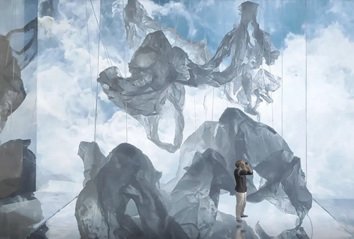 鄉村中的“風景”不僅是對現實的記錄,同時,它包含了個體情感的記憶與體驗,也包括群體價值觀的隸屬性和理想,成為了一種復雜的符號,是當代鄉土文化和夢想的載體?!帮L景”逐漸成為一個生產視覺文化的場所。在這個場所中,觀眾置身于影像與空間所建構的景觀式劇場之中,影像敘事演變為物理空間的過程即視覺文化進入空間生產的過程。當觀眾進入敘事場景中時,風景已經重新轉變為了一個無限延展的空間。
