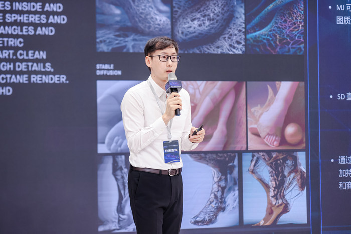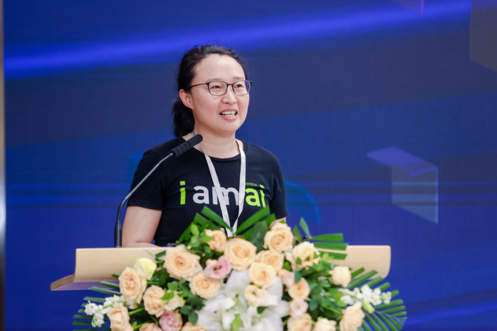 英偉達(NVIDIA)解決方案與架構技術總監張瑞華介紹了如何應用生成式人工智能技術進行科學研究和藝術創作,以及英偉達的人工智能解決方案。