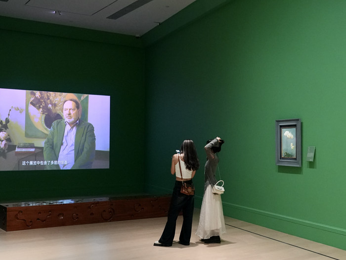 綜觀“動靜無盡:花卉靜物三百年”,德基藝術博物館此次無疑創造了相當開放而富有趣味的觀展體驗??鐚W科專家學者的參與,為這場體量龐大的展覽加入了新穎的觀看線索——譬如,你可以試著用植物學家的視角欣賞霍克尼的《藍色繡球花》,仔細觀察一下畫作中帶切口的綠葉;抑或根據第三章節一面電子屏幕中的“花卉目錄”,找找同一種花卉在這次展覽里露面了幾回。