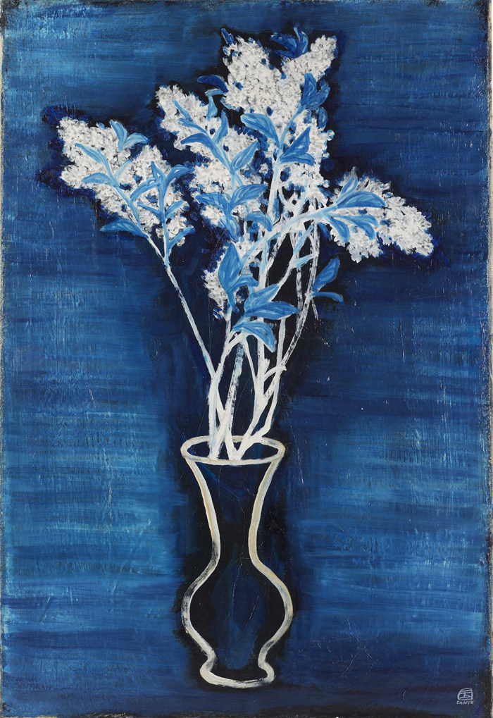 享有“中國西洋畫第一流人物”之譽的潘玉良致力于融合西畫與中國傳統,她的創作成熟期作品《青瓶紅菊》(1944年)體現出印象主義和早期野獸主義的影響。中國第一代留法藝術家常玉的晚年作品《藍色背景的盆花》(1956年)是其6幅珍稀的普魯士藍背景瓶花畫作之一,以單純的線條、本真的色彩勾畫出雋永的世界。