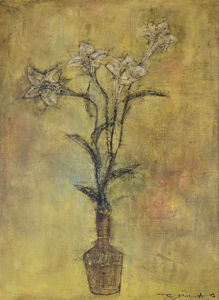 (右)趙無極,《百合花》,約20世紀50年代早期