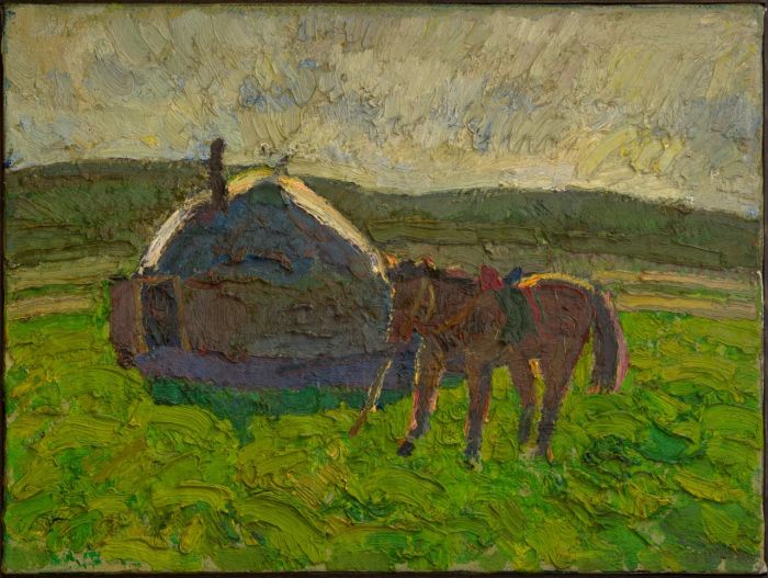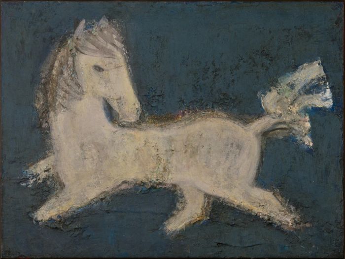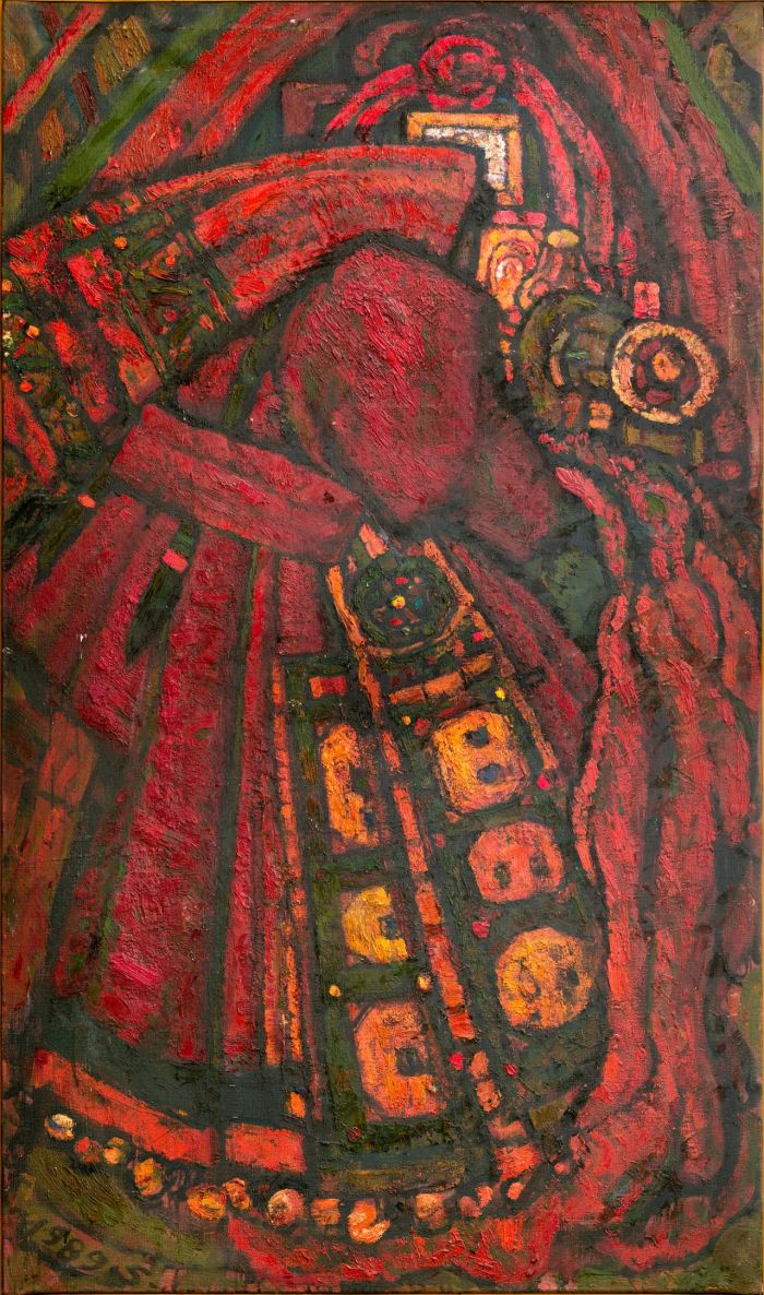 砂金的創作大致可分為三個階段:第一個階段是上世紀80年代-90年代中期,是砂金從大學畢業到研究生畢業這個階段,代表性的創作有《紅云》和《姐妹》系列等,這些作品突出表現了草原生活符號;第二個階段是90年代中期至2020年,從砂金到日本東京藝術大學做訪問學者開始,以及回國后一直到2020年。一段長達20多年的長時間的轉變過程,這一階段里,主要的創作作品有《馬》系列、《春游》系列、《搏·克》系列,以及《讀山》系列等大量的國內外寫生作品。在這些作品里,砂金有意識的擺脫西方現代藝術的影響,不斷地進行自我建構,呈現了一個全新的創作過程;第三個階段是從2020年初開始的,一個新的轉變時期,砂金開始對整個油畫藝術傳統的觀念、圖像和符號進行一種重新建構,試圖為解讀當代藝術提供全新的價值起點和語言形式。