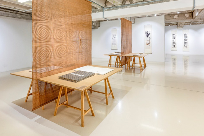 展覽現場用竹簾等元素裝飾,營造出中國文人書齋的氛圍 ?hesign