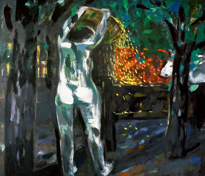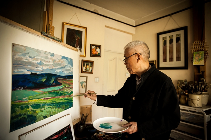 他常用奔放的筆觸揮灑出山川大地、草場樹林,以及室內繽紛的瓶花……畫中的色彩、線條、結構和節奏都飽含感情,將變形、分解、重新排列等手法運用到形式組合中,以顯畫面新穎而有生氣。藝術家將經驗的日常轉化為有情的超俗,從繁雜的外在印象淬煉出自覺的內在節律,藝術有了源源不斷的創造動力,也就有了個性化的果實。